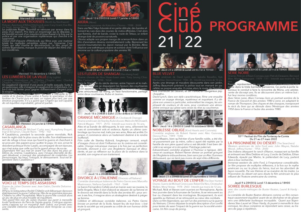 Programme du Ciné-club de septembre 2021 à juin 2022 Partager : Cliquer pour partager sur X(ouvre dans une nouvelle fenêtre) X Cliquez pour partager sur Facebook(ouvre dans une nouvelle fenêtre) Facebook J’aime chargement…